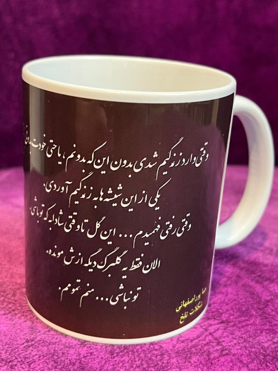 ماگ از رمان شکلات تلخ کتاب دو جلدی از هما پور اصفهانی با تصویر دیو و دلبر و دلنوشته ای از هما پور اصفهانی