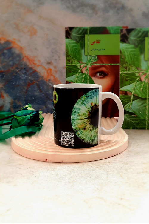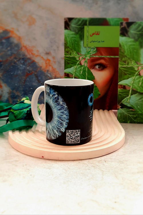 ماگ یادآور رمان تقاص نوشته هما پوراصفهانی با طرح چشم رزا و داریوش به همراه کلیپی و آهنگی از رمان